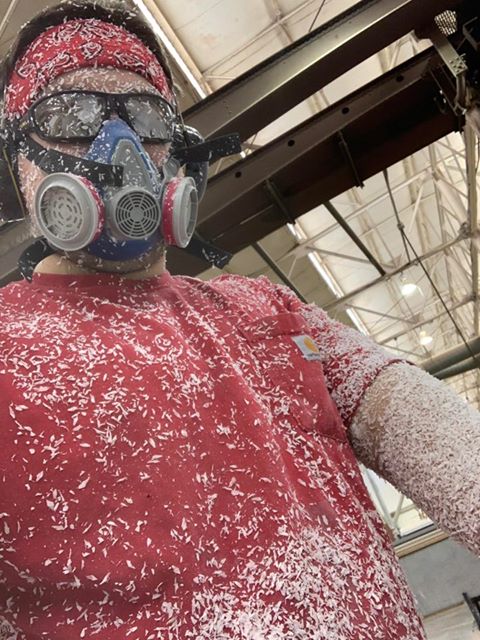 “When we couldn’t maintain 6’, we suited up in Tyvek suits. The 2 guys pictured (below) were swinging 8’10” x 4′,” explained Local 158 General Foreman Joe Swaim.