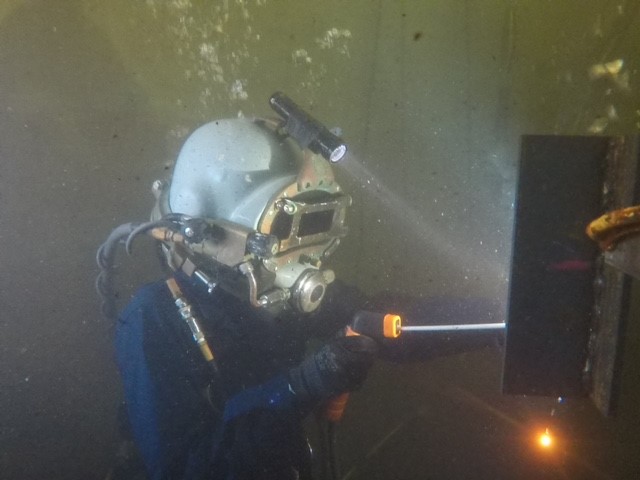 Diver and Welder in the diving tank at the Philadelphia Carpenters Training Center