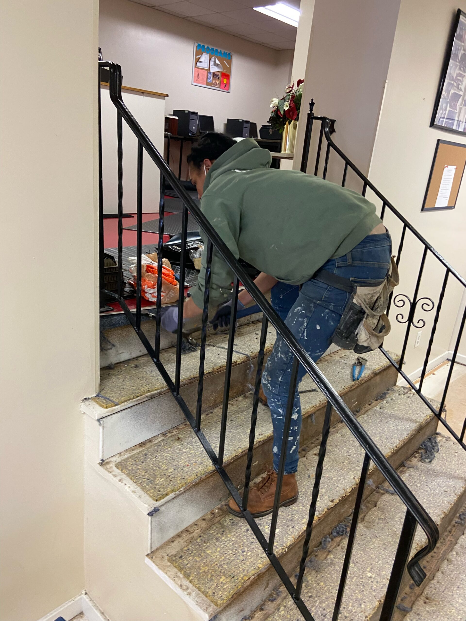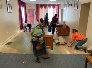 On a Sunday, six Sisters in the Brotherhood volunteered their morning to help tear up the floor and prepare it for the floor layers to complete the job.